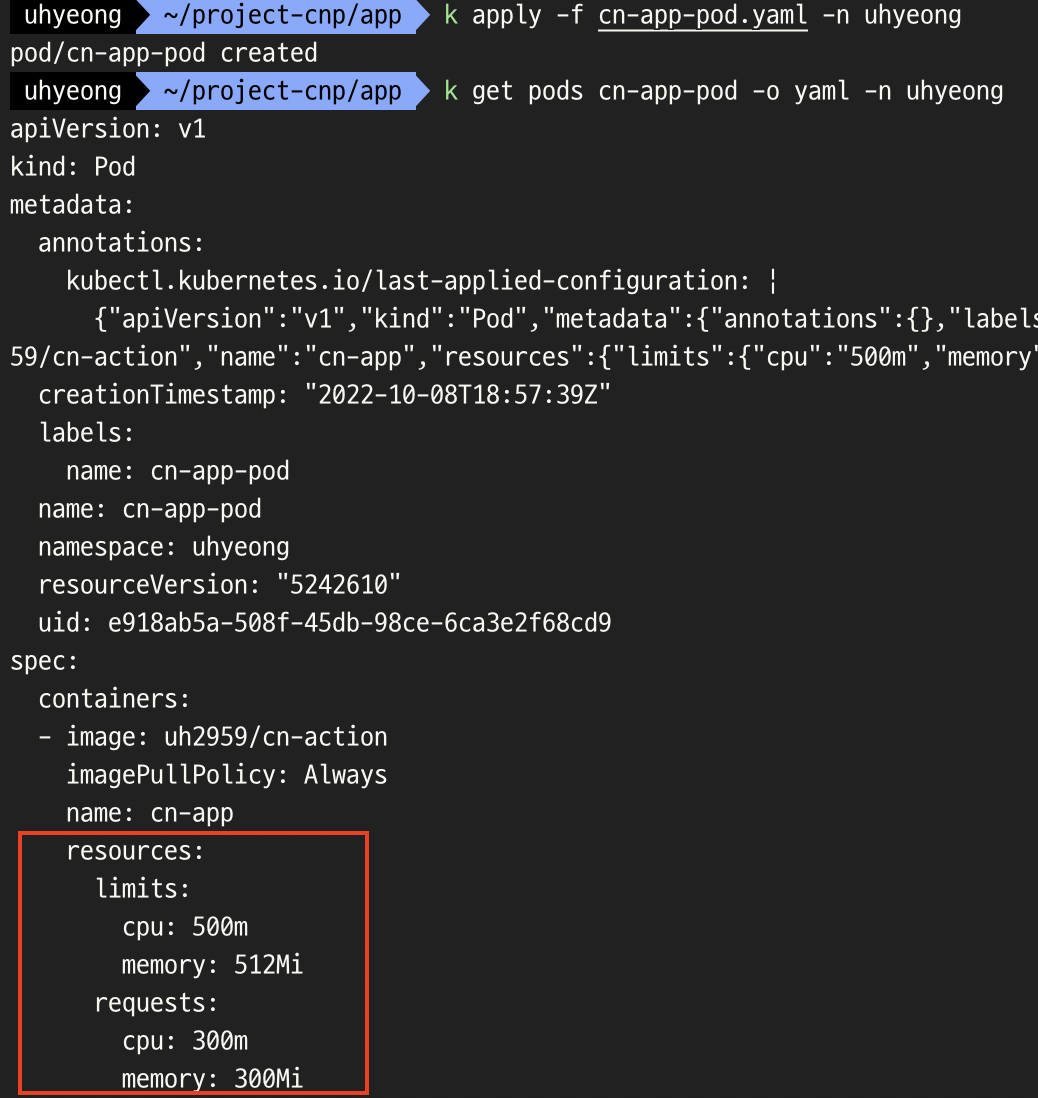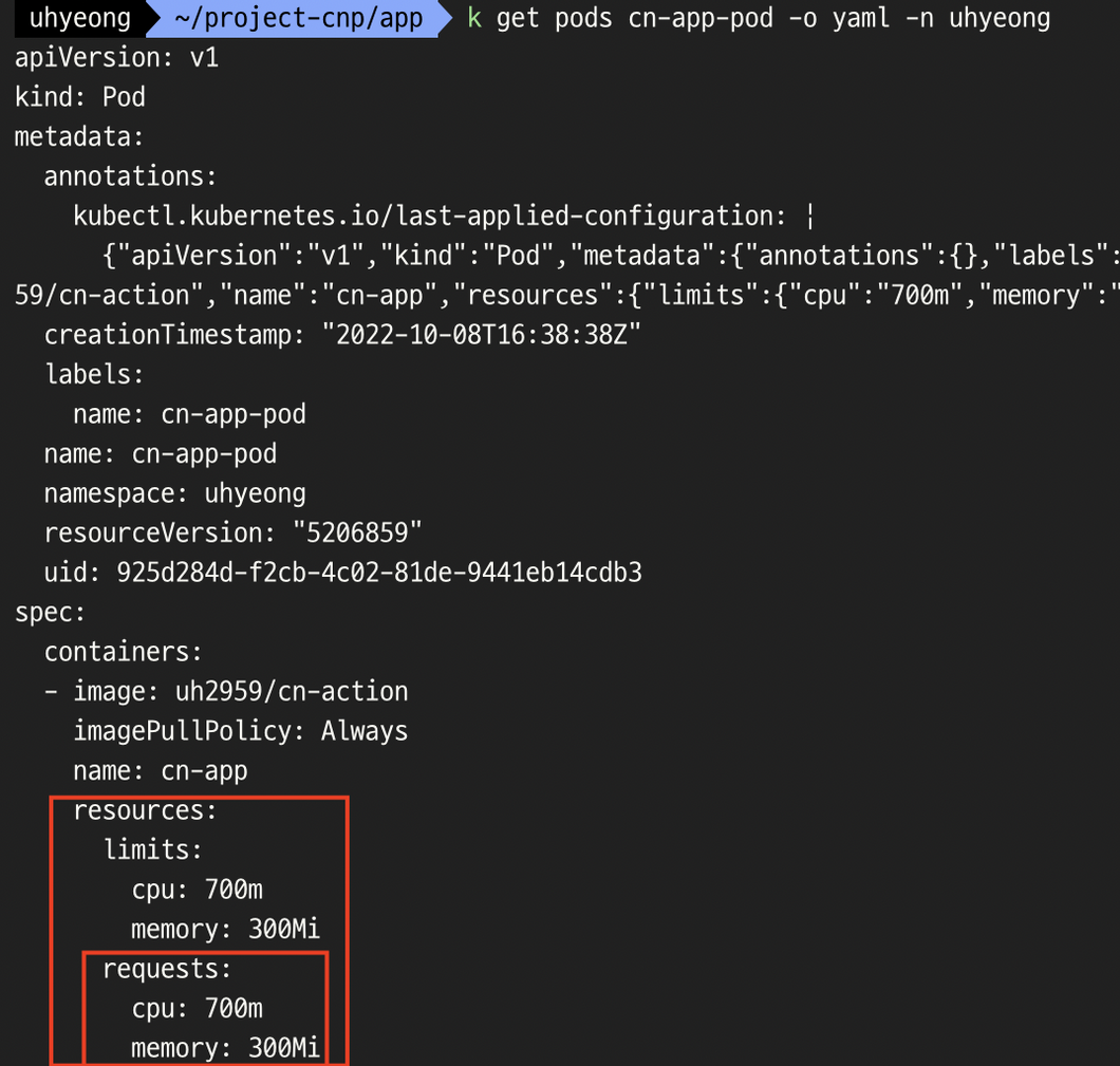 - μ΄μ λ₯Ό μκ°ν΄ 보μλλ [ limits κ° = requests κ° ] ⇒ Guaranteed QoS ν΄λμ€ μ΄λ―λ‘..!