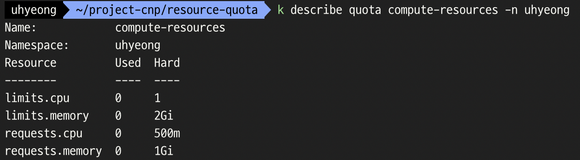 - 리μμ€ ν λΉλμ λν Resource Quota μμ± ν νμΈ