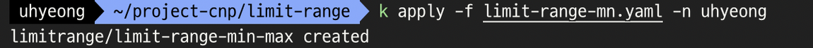 - LimitRangeμ λν μ λ§€λνμ€νΈλ‘ λμ λ€μμ€νμ΄μ€μ μμ±νλ€.