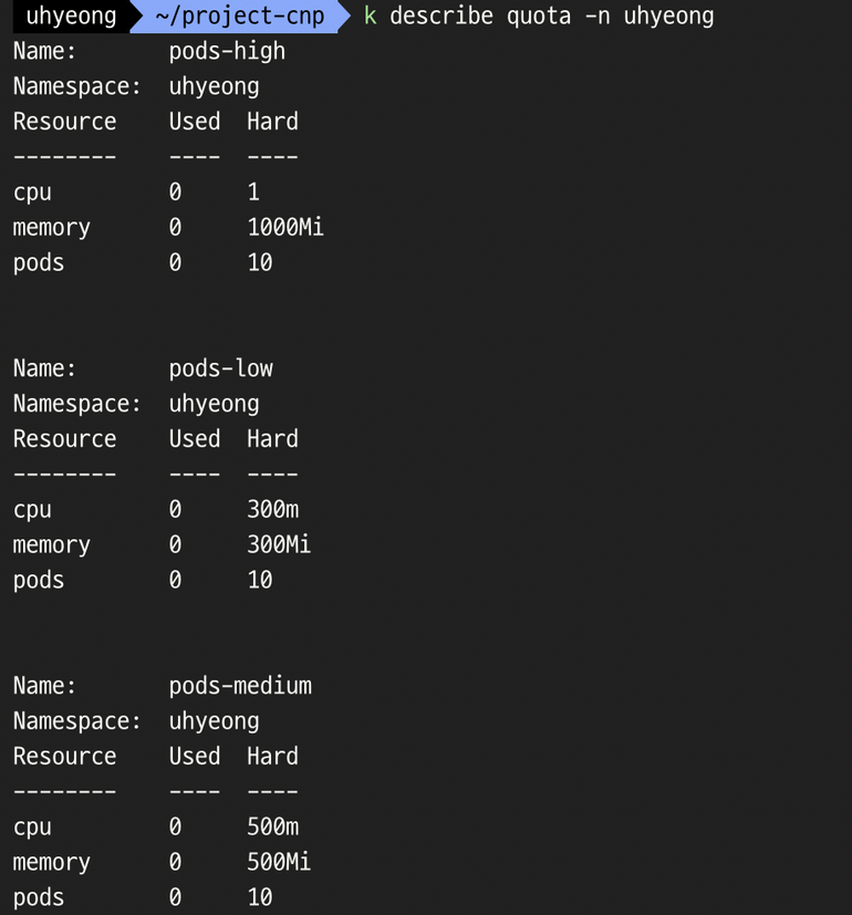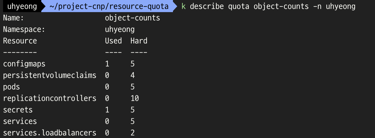 - ResourceQuotaμ κ΄ν λ§€λνμ€νΈλ₯Ό μμ±νμλ€.