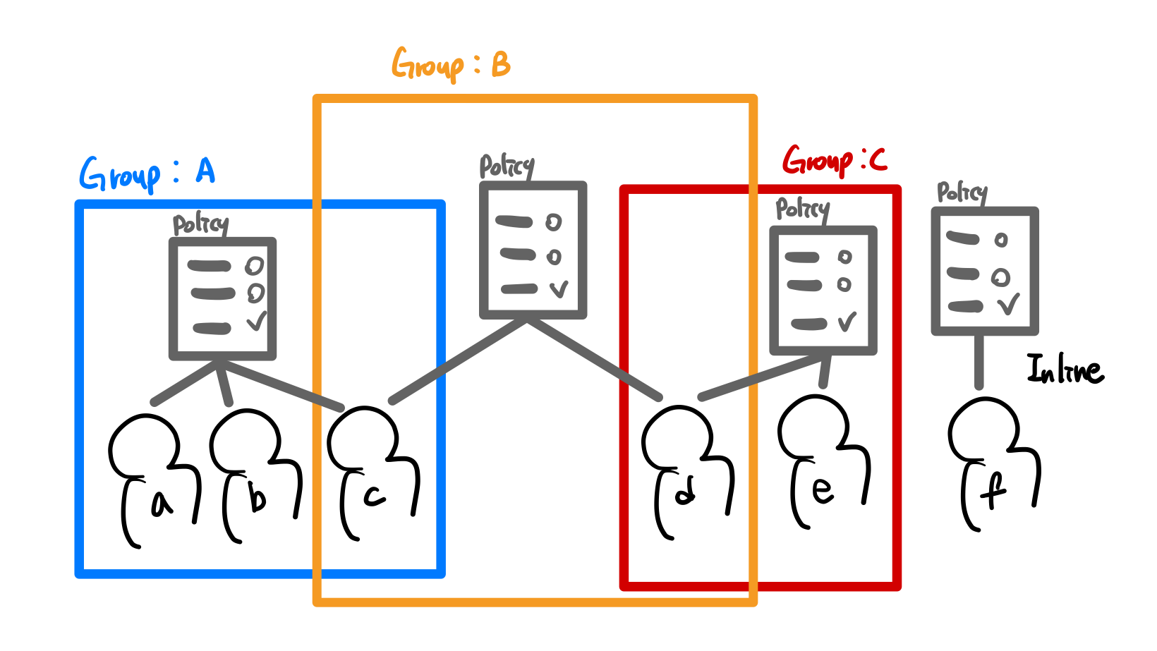 - 다수의 Group에 포함된 User는 다수의 Policy 영향