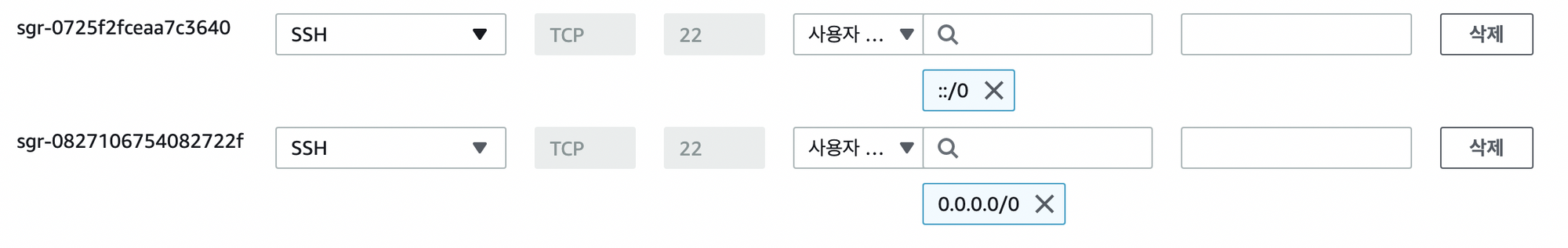 - 올바르게 SSH 규칙이 다음과 같이 할당되었는지 확인