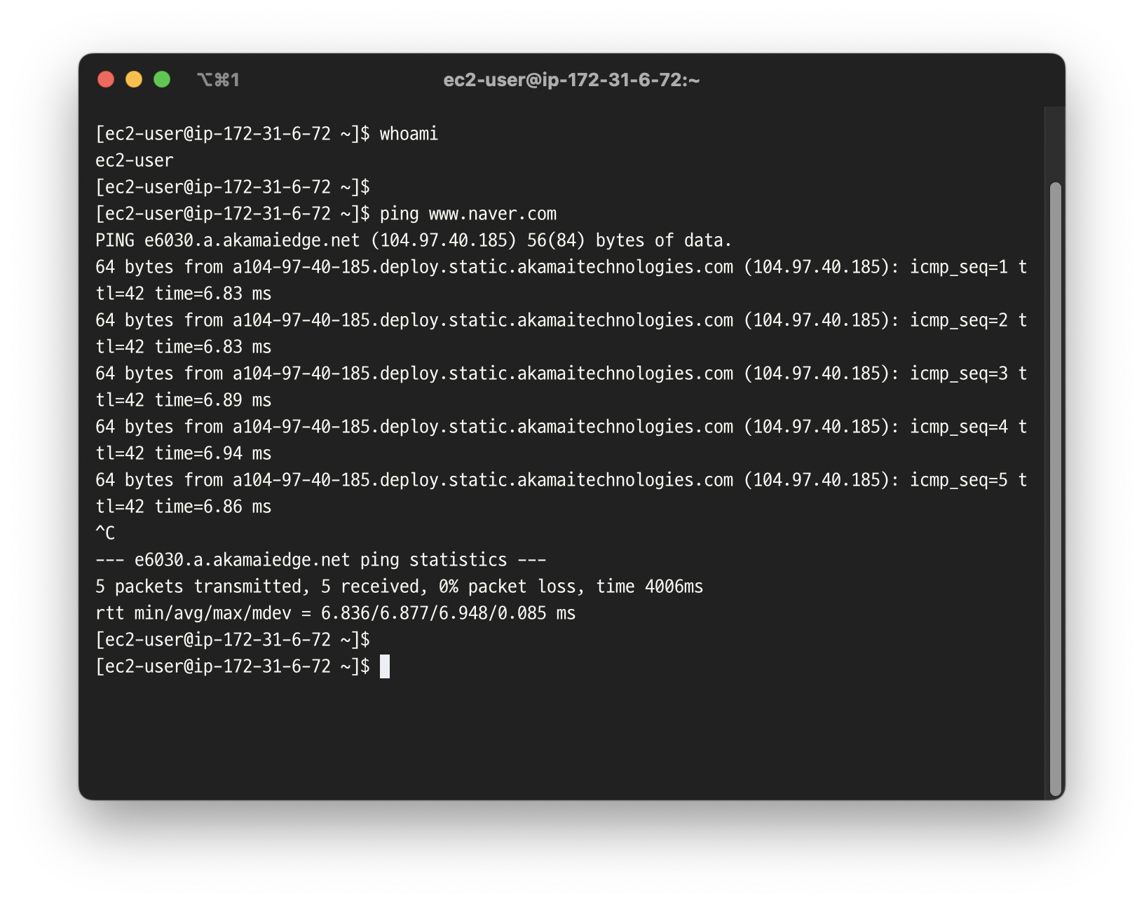 - whoami 명령어를 통해 현재 User 확인