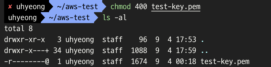 $ chmod 400 test-key.pem