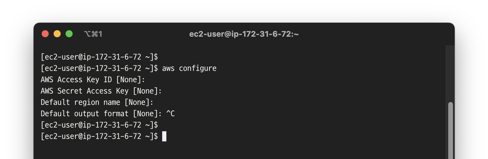 - 자격 증명을 위해 aws configure 명령을 통해 정보를 입력하게 된다면..