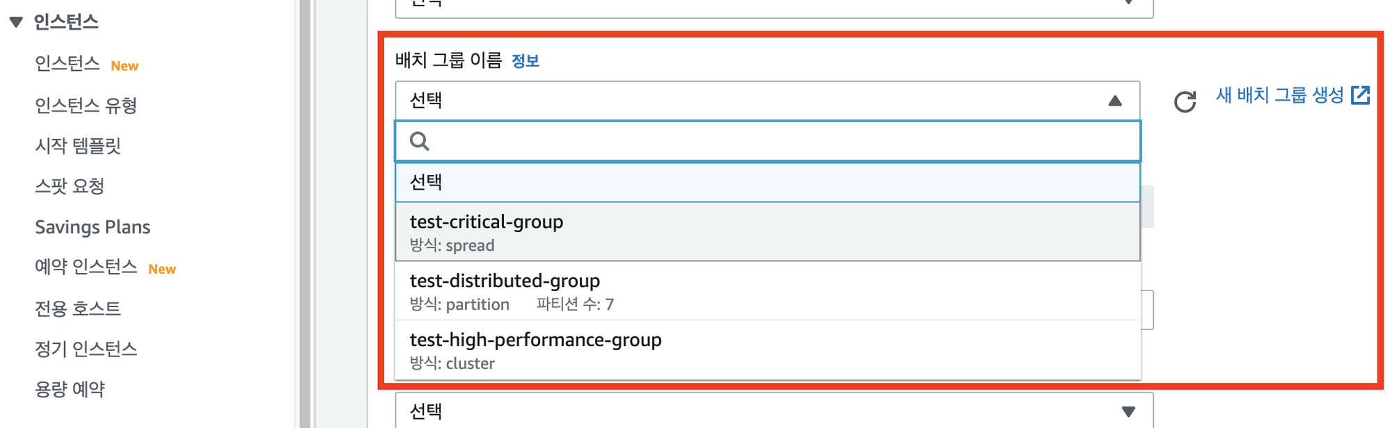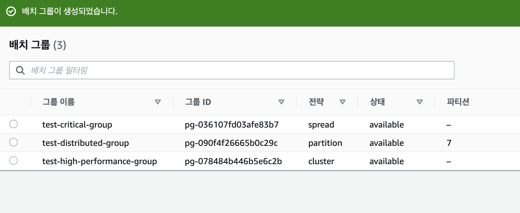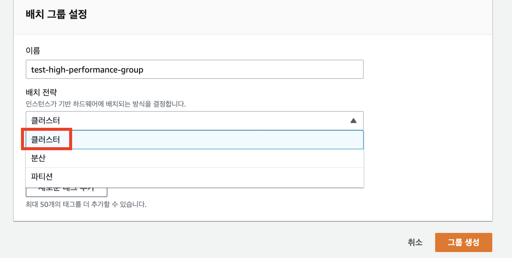 - 배치 그룹 생성 - 배치 전략 (클러스터)