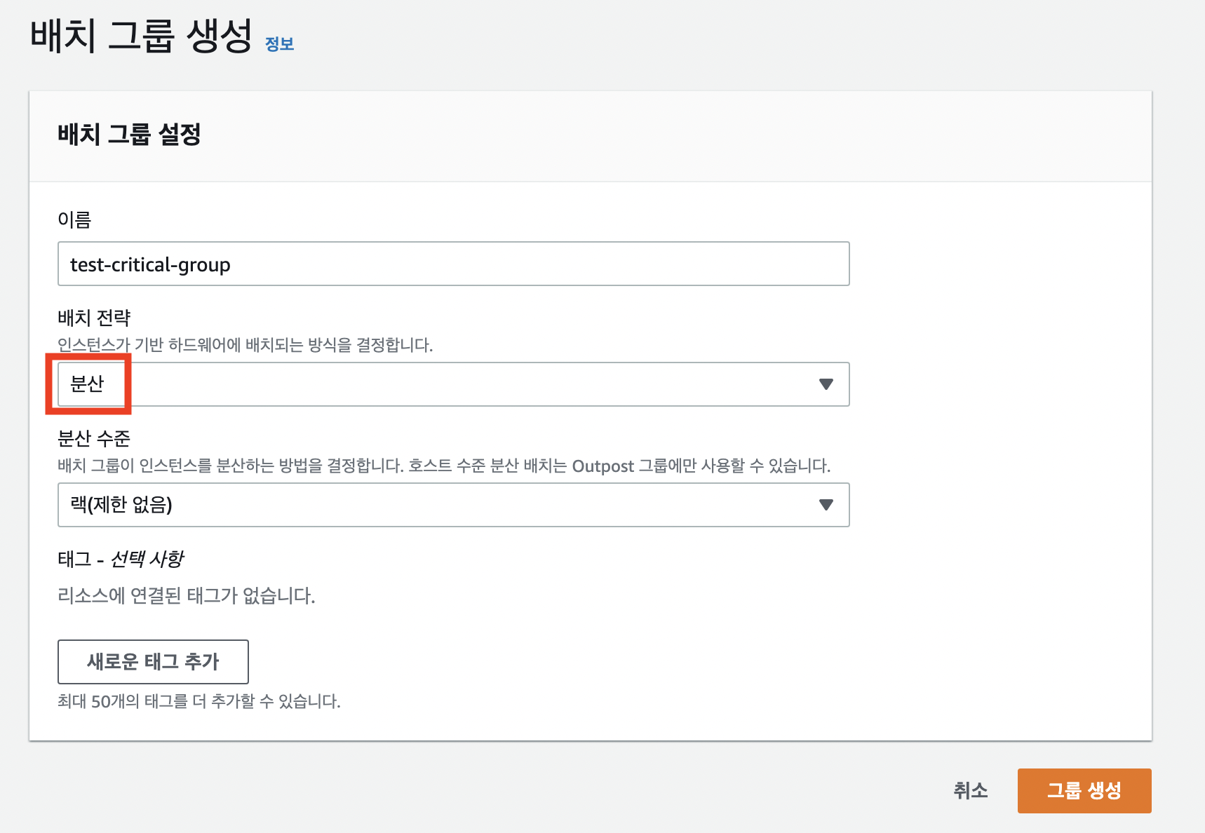 - 배치 그룹 생성 - 배치 전략 (분산)