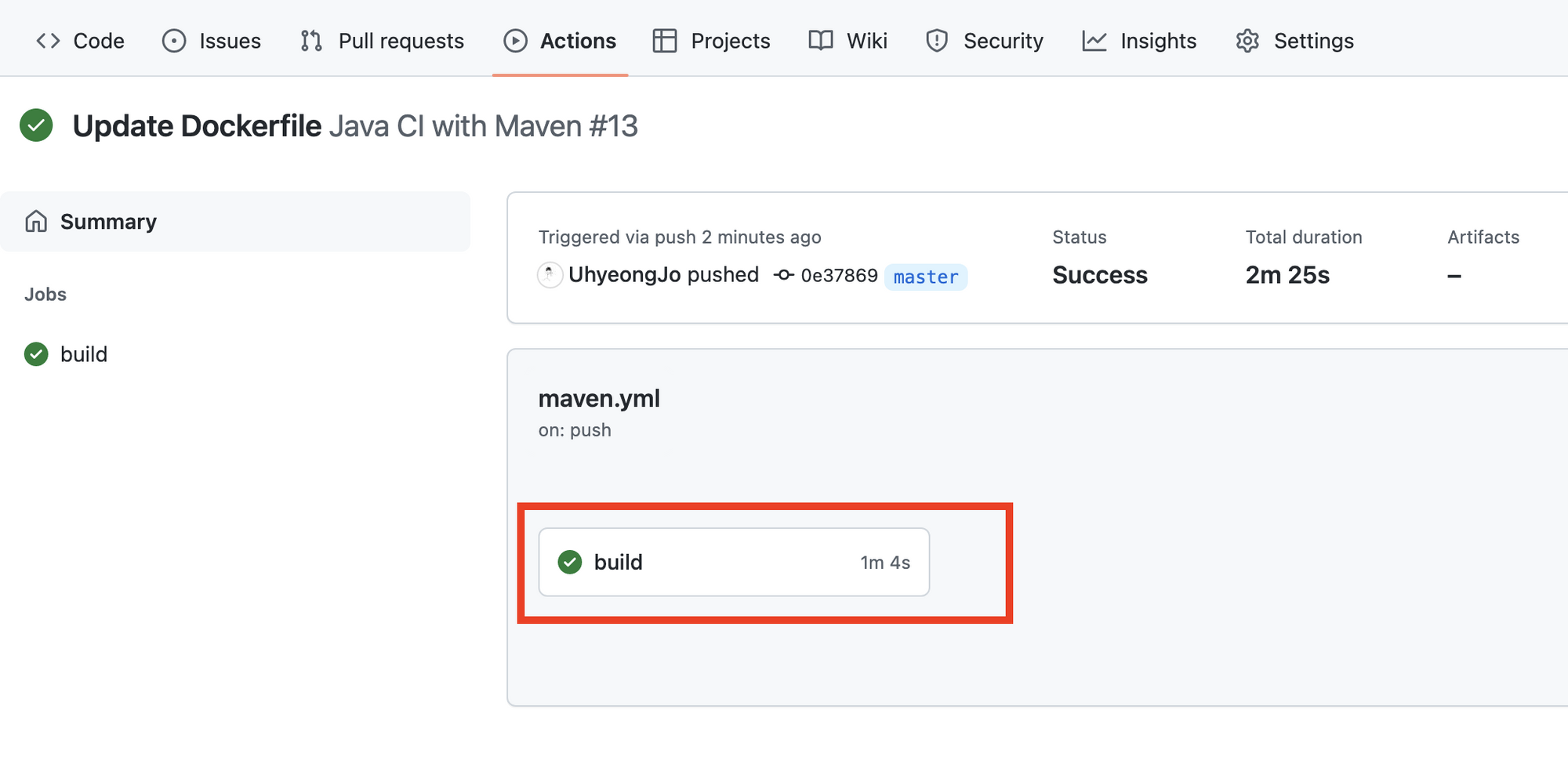 ▪︎ 소스코드 수정 커밋 발생 시 자동 빌드 확인