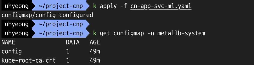 - MetalLB에 ConfigMap 적용