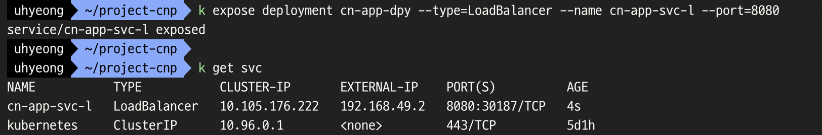- kubectl expose deployment cn-app-dpy --type=LoadBalancer --name cn-app-svc-l