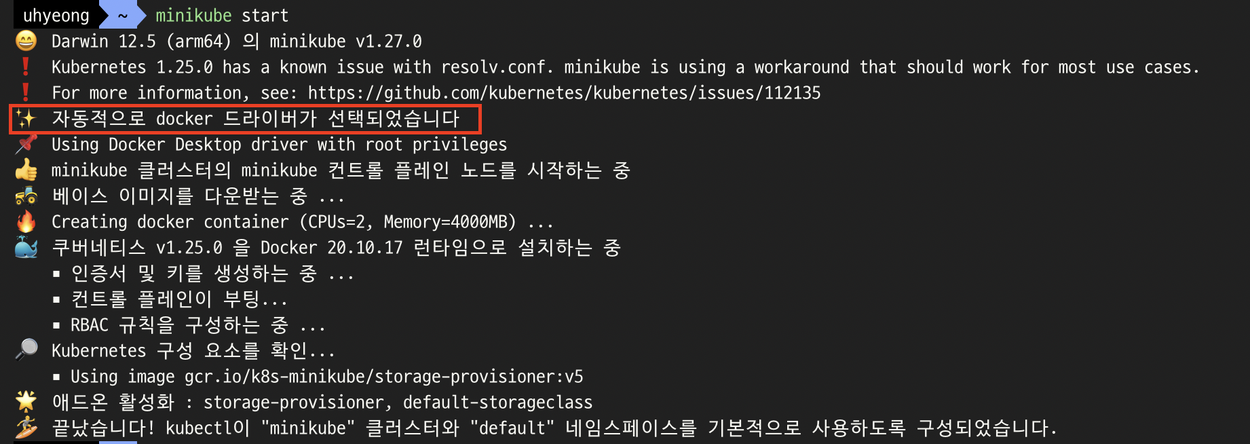 ⎿ 나의 Minikube는 Docker Driver를 사용하는 것을 확인 !