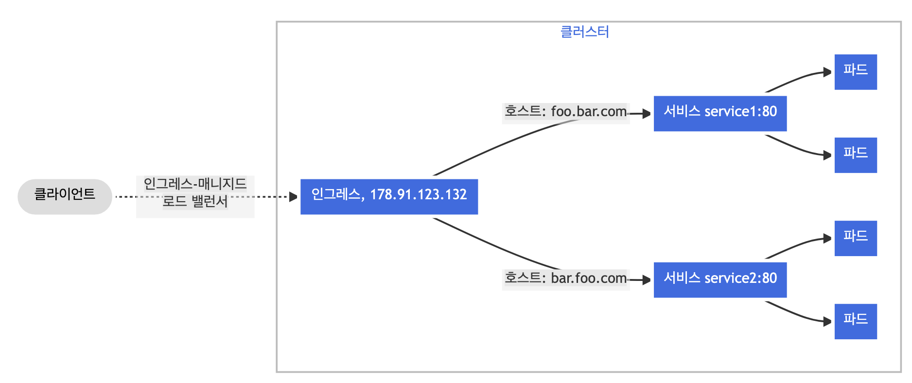 - Ingress는 외부의 HTTP/HTTPS 트래픽 요청을 규칙에 따라 Service에 전달 (L7)