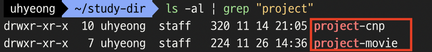 - 명령어_1의 결과는 | 파이프를 통해 명령어_2의 입력으로 전달되어 들어간다.