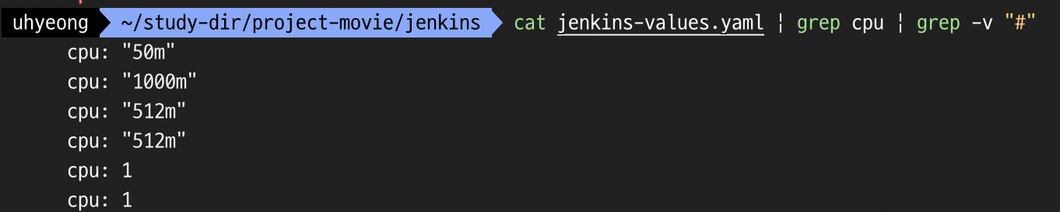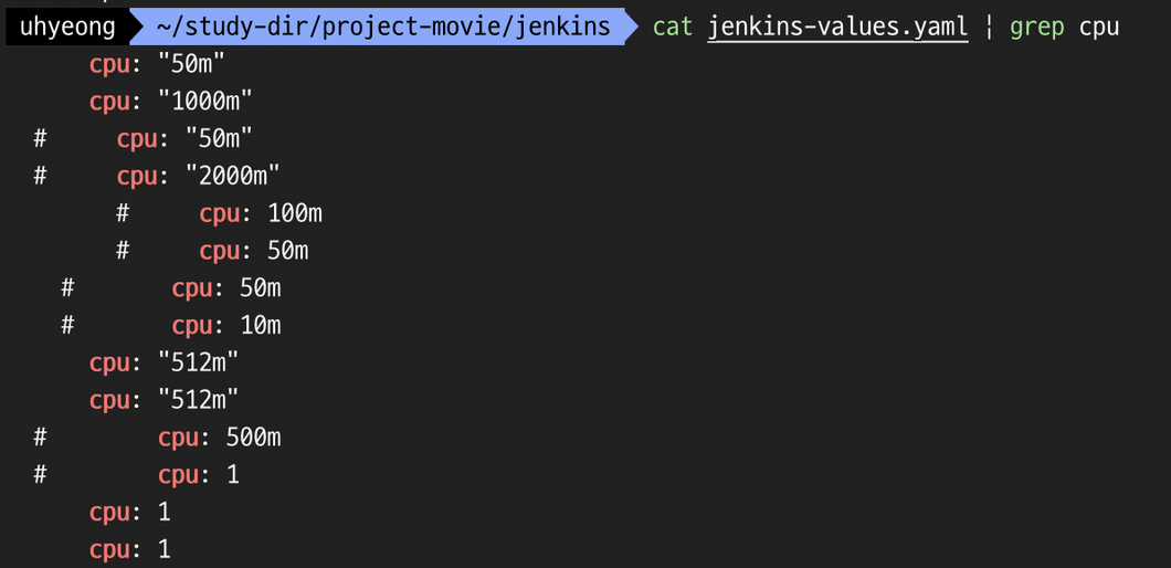 - 젠킨스 파드 스펙의 cpu 리소스를 수정(helm upgrade) 하고자 value 파일을 확인하는데..