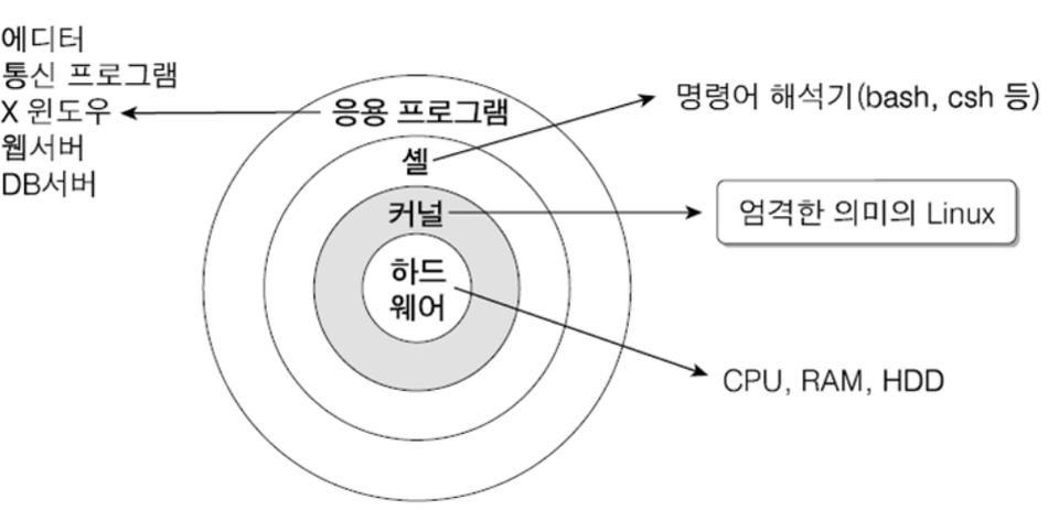 💡 쉘(Shell) : 사용자와 OS의 내부 커널 사이의 인터페이스를 감싸는 층