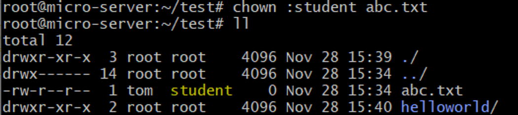 - abc.txt 파일 소유 그룹을 student로 변경